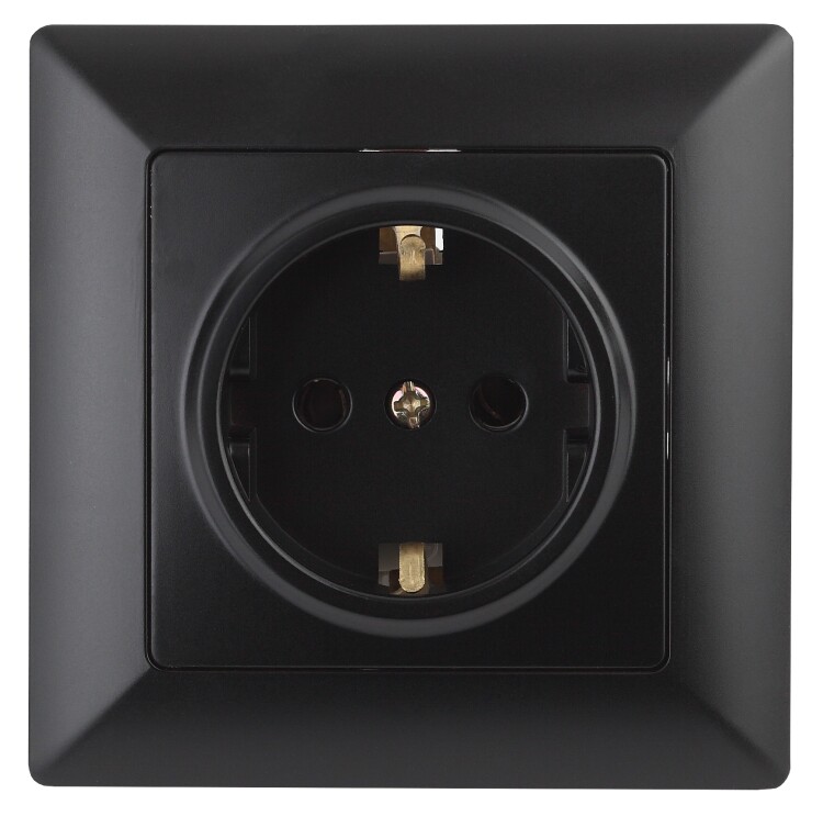 Розетка со шторками серии Intro Solo скрытой установки цвет антрацит 4-206-05 с заземлением, шторками. Номинальные характеристики 16А 250В. Розетка выполнена из негорючего термопласта, укомплектована одноместной рамкой, оснащена винтовыми клеммами. Клеммы с двумя отверстиями позволяют соединять соседние розетки шлейфом. Установка в подрозетник производится как на монтажные лапки, так и на винты. Для установки 2-х и более устройств в несколько подрозетников в ряд дополнительно используются многоместные рамки.