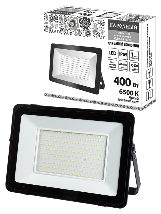 Прожектор светодиодный СДО-04-400Н 400 Вт, 6500 К, IP65, черный, Народный (кр.1шт)