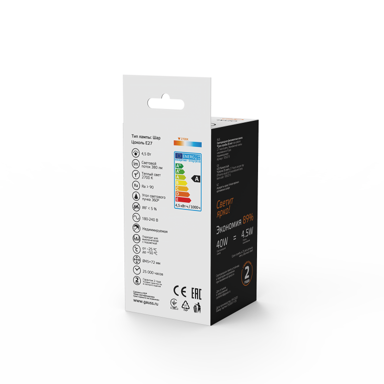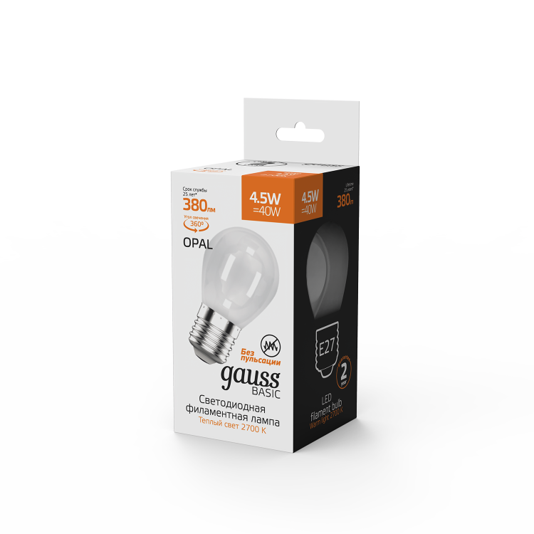 Благодаря цветовой температуре 2700К, лампа создает мягкий и приятный свет, напоминающий теплоту классических ламп накаливания.