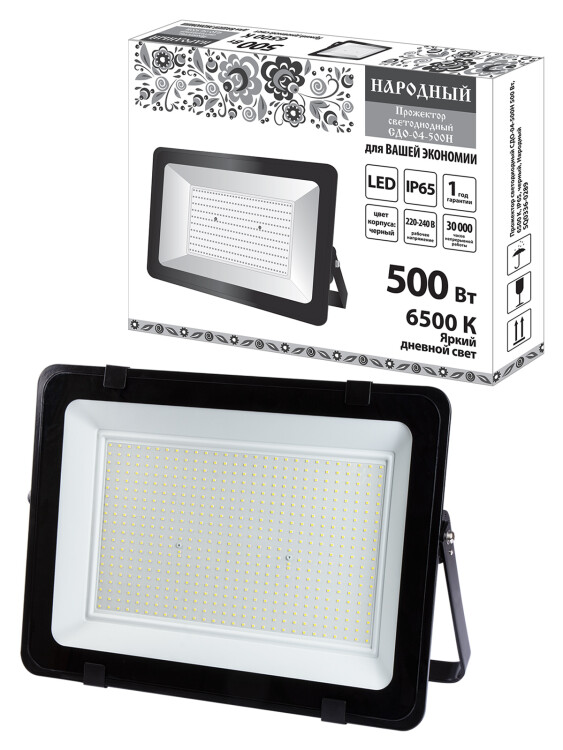Прожектор светодиодный СДО-04-500Н 500 Вт, 6500 К, IP65, черный, Народный (кр.1шт)