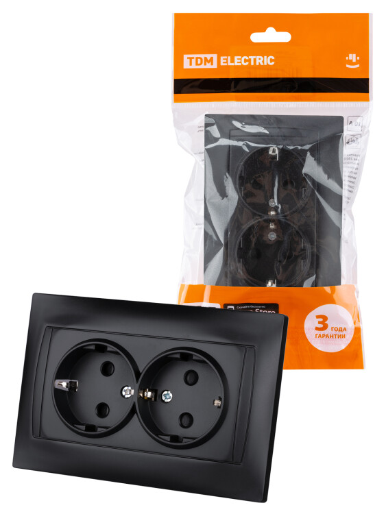 Розетка двойная 2П+З 16А 250В с защ. шт. графит "Лама" TDM (кр.6шт)