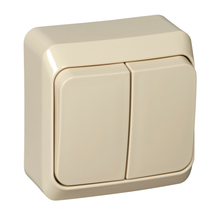 Выключатель Systeme Electric (ранее Schneider Electric) ЭТЮД (кремовый, открытой установки) двухклавишный предназначен для применения в сетях до 250В, на ток до 10А. Две клавиши позволяют управлять двумя источниками света с одной точки. Он прост в установке и удобен применении. Сделано в России.