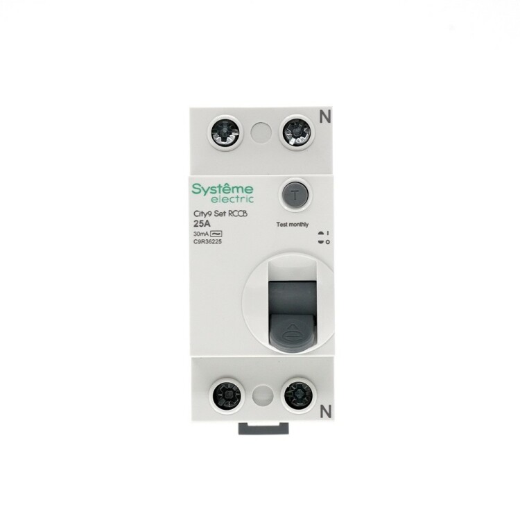 Выключатель дифференциального тока (ВДТ) или устройство защитного отключения (УЗО) серии City9 Set Systeme Electric, 2-полюсный, номинальный ток 25А, ток утечки 30 мА, тип АС, электромеханический. Применяется в электрических сетях напряжением 230В. Уставка по току утечки 30 мА обеспечивает гарантированную защиту людей при прямом и косвенном прикосновении. Кнопка тест обеспечивает проверку работоспособности аппарата. Крепление на DIN-рейку шириной 35 мм. Подключение сверху и снизу. Безопасные клеммы (ранее Schneider Electric Easy9 EZ9R34225).