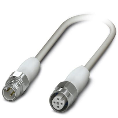 Кабель для датчика / исполнительного элемента, 4-полюсн., PP-EPDM, серый RAL 7035, Штекеры прямое M12, механические ключи: A, к Гнездо прямое M12, механические ключи: A, длина кабеля: 0,6 м, Гигиеничный дизайн, с накатанной гайкой из легированной стали