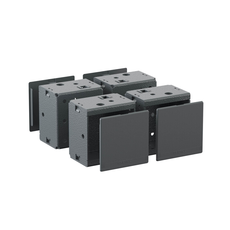Комплект угловых элементов с пластиковыми заглушками предназначен для установки шкафов и организации ввода кабелей. Угловые элементы изготовлены из стали толщиной 2,5 мм с порошковым покрытием черного цвета. Комплект включает 4 угловых элемента высотой 100 мм, оснащенных съемными пластиковыми заглушками, которые обеспечивают удобную фиксацию к транспортировочной паллете и защиту элементов при перевозке.