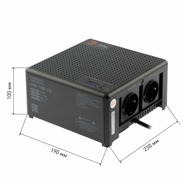Стабилизатор напряжения компактный однофазный релейный цвет чёрный модели CНК-1500-УЦ. Номинальные характеристики (полная мощность / диапазон входного напряжения): 1500ВА 140-260В . Предназначен для поддержания стабильного однофазного напряжения питания бытовых приборов при отклонениях значений сетевого напряжения. Выбирая стабилизатор, нужно знать, какое электрооборудование будет к нему подключено: один прибор, группу приборов (наиболее чувствительных к перепадам напряжения в сети) либо вся домашняя (офисная) техника. Затем необходимо рассчитать суммарную мощность защищаемых электропотребителей. Основное условие выбора мощности стабилизатора напряжения - суммарная мощность подключаемой к нему нагрузки не должна превышать полной мощности самого стабилизатора (в противном случае автоматика стабилизатора будет их просто отключать). Точные значения мощности можно узнать из паспортных данных Вашего конкретного потребителя. Стабилизатор подбирается с запасом в 25-30% к его полной мощности.