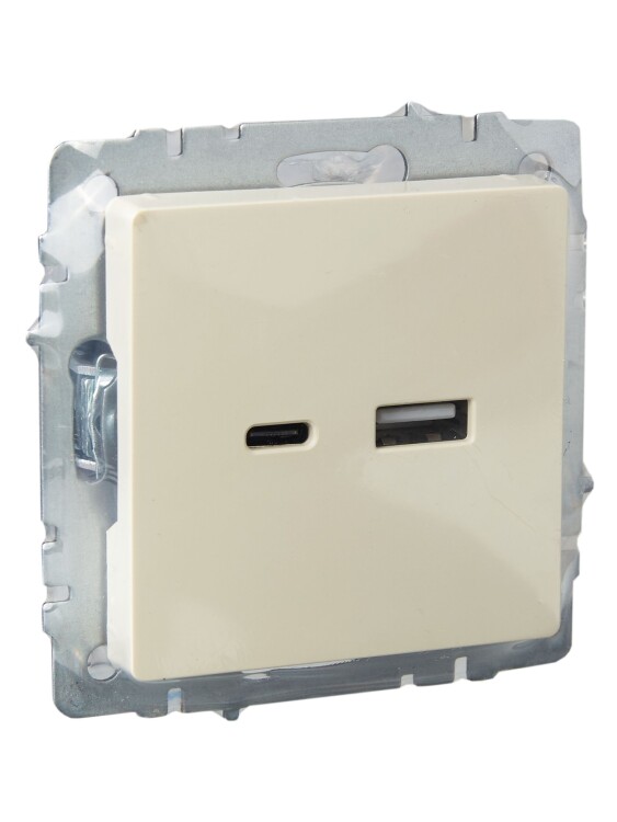 BRITE Роз. USB A+C 18Вт РЮ11-1-БрКр беж. IEK (кр.1шт)