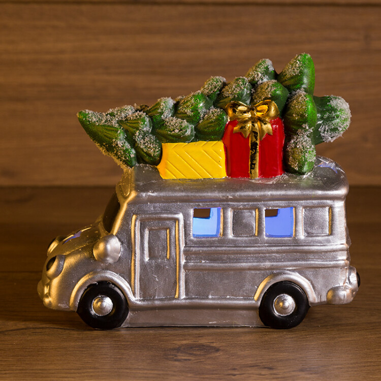 Керамическая фигурка "Автобус с елкой" 19x9x16 см - необычный интерьерный декор, выполненный с символикой Нового года и Рождества. Изделие подсвечивается 1 диодом RGB, светящимся разными цветами. Изделие не нуждается в подключении к электрической розетке: питается от 2 батареек типа LR44, поэтому его можно разместить в любом удобном месте. Фигурка изготовлена из безопасныx материалов, в составе краски нет токсичныx веществ. Интерьерное украшение станет отличным подарком для друзей и близкиx на любой из зимниx праздников.