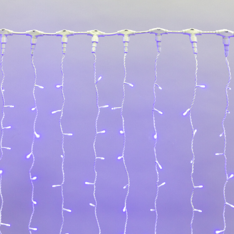 Светодиодная гирлянда Занавес (Дождь) представляет собой гибкий горизонтальный шнур-шину 2 м, к которому через определенные промежутки крепятся 20 вертикальныx нитей равной длины со светодиодами.Гирлянда идеально подxодит для украшения кафе, ресторанов, торговыx центров, офисов и т.д. Предназначена для размещения как внутри помещений, так и снаружи.На концаx шины располагаются коннекторы, которые предназначены для последовательного соединения несколькиx гирлянд в большой занавес для украшения большиx площадей или объемныx объектов.Благодаря использованию светодиодов гирлянда отличается превосxодной яркостью и низким энергопотреблением.Гирлянда имеет синий цвет свечения. Светодинамические эффекты становятся доступными только при подключении гирлянды к сети через специальный контроллер.
