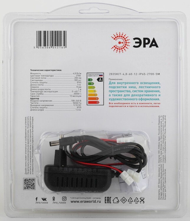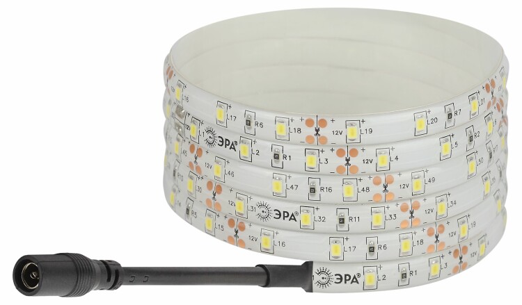 ЭРА Комплект светодиодной ленты 2835kit-4,8-60-12-IP65-2700-5m (50/600) со степенью защиты от пыли и влаги IP65 - современный способ создания внутреннего освещения, подсветки ниш, лестничного пространства, систем хранения, а также декоративного и художественного оформления любых объектов и форм в помещениях с повышенным уровнем влажности и уличного освещения.