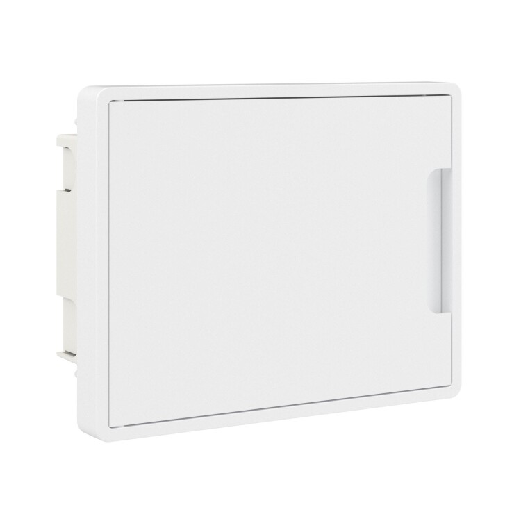 Встраиваемый модульный щиток «Фрейм» (FRAME) предназначен для монтажа скрытым способом в бетонные\кирпичные стены в жилых и административных помещениях. Применяется для установки модульных устройств. Съёмная рама с DIN-рейками позволяет сначала смонтировать и подключить силовое оборудование и затем установить его в основание щитка в стену. Установка стандартных латунных шин возможна по всем стенкам основания. За счёт симметричного конструктива щитка есть возможность изменения направления открывания дверцы. Количество модулей — 8. Цвет корпуса белый, цвет двери — белая, ширина — 224 мм, высота — 181 мм, глубина — 99,5 мм. Материал — термостойкий и ударопрочный пластик. В комплекте 2 шины PEN на 6 и 8 отверстий.