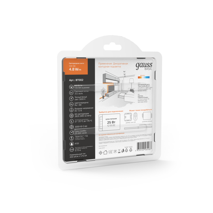Ассортимент светодиодных лент Gauss способен решить ряд задач связанных как с декоративным освещением помещений, так и с экстерьерной подсветкой.