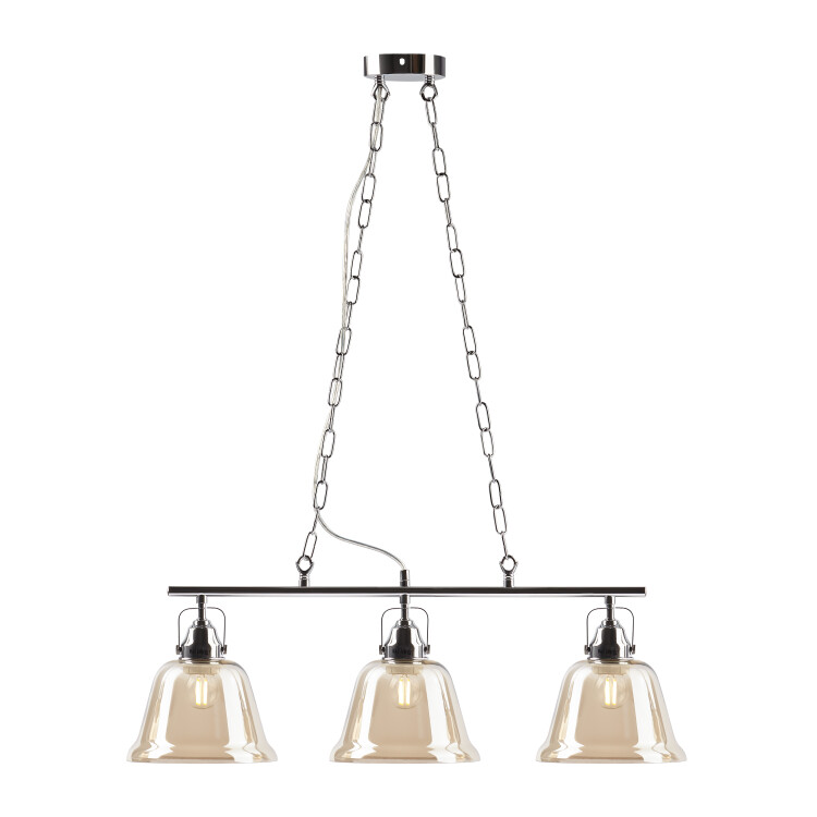 Оригинальные светильники с плафонами в форме колокольчика. Толстое дымчатое стекло отлично сочетается с хромированной арматурой и декоративной крепёжной фурнитурой. Своей формой эти светильники напоминают бутон цветка на стебле или уличные ретро-фонари. Создадут уютную атмосферу в гостиной, спальне, на кухне, в коридоре, столовой, студии. Помогут расставить в помещении световые акценты, разнообразить интерьер. Стильные, романтичные, практичные. Коллекция представлена подвесным светильником на 3 лампы.