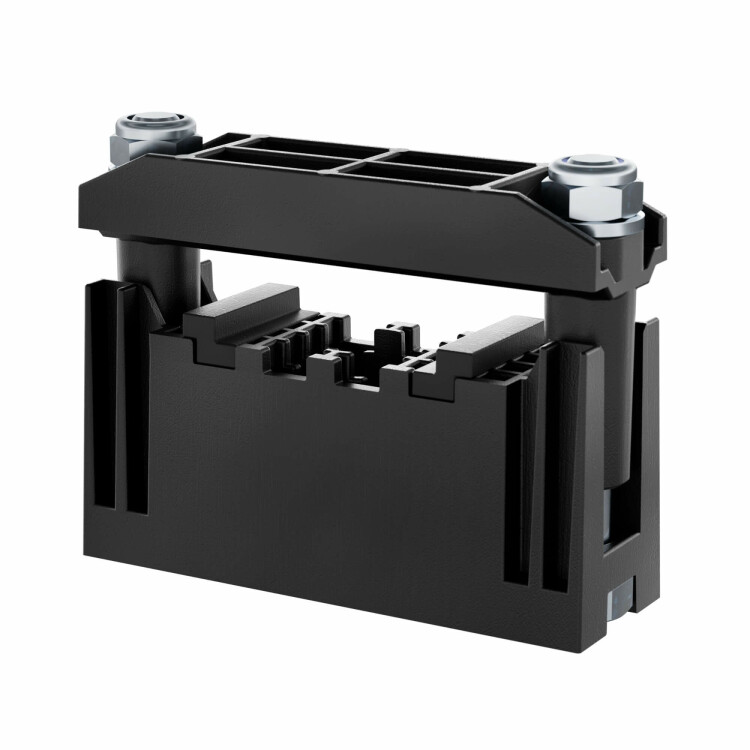 Изолятор ступенчатой системы шин предназначен для надежного крепления токоведущей шины сечение м от 20х5 до 50х10 благодаря передвигаемым проставкам.