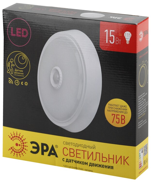 Cветодиодный светильник пылевлагозащищенный IP20, с датчиком движения, мощностью 15Вт, световым потоком 1440Лм. Подходит для освещения блока ЖКХ, гаражей, балконов, а так же других помещений с повышенной влажностью. Радиус действия датчика: до 6 м. Датчик оснащен настройками: Настройка времени работы после срабатывания. От 10 секунд (минимум) до 10 минут (максимум).Настройка уровня освещенности. В позиции "солнце” светильник включается при освещённости менее 2000 Люкс В позиции "луна” светильник включается при освещённости меньше 10 Люкс.