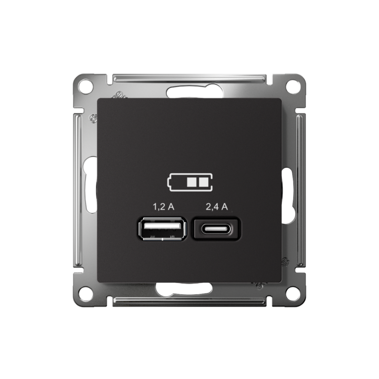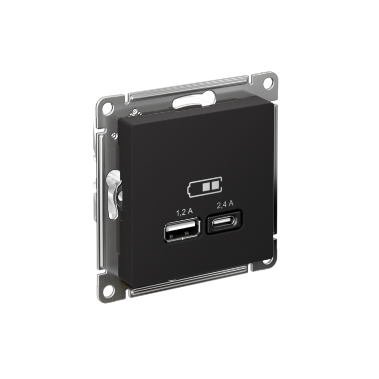 Розетка Systeme Electric (ранее Schneider Electric) серии AtlasDesign в цвете карбон двойная USB с разъемами типа A+C. Лицевые детали из качественного ABS-пластика, устойчивого к царапинам и УФ-излучению. Самая современная USB-зарядка с двумя разъемами позволяет заряжать как стандартные мобильные устройства через разъем типа А, так и новейшие устройства, в том числе ноутбуки, с разъемом типа С. Бл агодаря покрытию «soft touch» к изделию приятно прикасаться. (ранее Schneider Electric ЭУИ UNICA NEW NU501854)