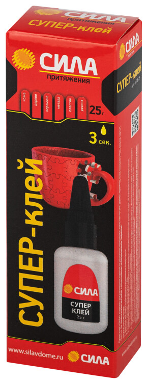 Популярный супер-клей в пластиковой тубе объёмом 25 гр. Супер-клей СИЛА SGTB-25 – проверенный клей с отличными свойствами. Обладая высокой концентрацией цианакрилата и хорошей текучестью, он особенно эффективен для склеивания металлических деталей. Успешно применяется для пластика, дерева, кожи, резины, керамики, фарфора. Экономично расходуется и застывает за 5 секунд. Формат тубы с удлиненным носиком обеспечивает удобство при нанесении супер-клея. Увеличенный объём супер-клея позволяет склеить детали большей площади или осуществить несколько разных склеиваний. Каждый тюбик супер-клея упакован в картонную коробку с европодвесом для удобного размещения на крючках торговых стеллажей.