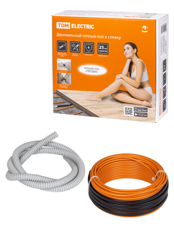 Назначение:br/Поддержание комфортной температуры пола.Основной и дополнительный обогрев помещений.br/Применение:br/Гостиные, кухни, ванные комнаты, санузлы, общественные помещения.br/Преимущества:br/Легкость монтажа в стяжку.Возможность укладки в помещениях со сложной формой.Поддержание комфортных температурных условий в помещении.Гофрированная трубка для установки термодатчика в комплекте.br/Конструкция:br/Двухжильный кабель.br/Материалы:br/Греющий кабель-нихром, константан (медно-никелевый сплав).Экран-фольга алюмофлекс с дренажной жилой из луженой меди.Внешняя изоляция-пластикат ИТ-105.br/