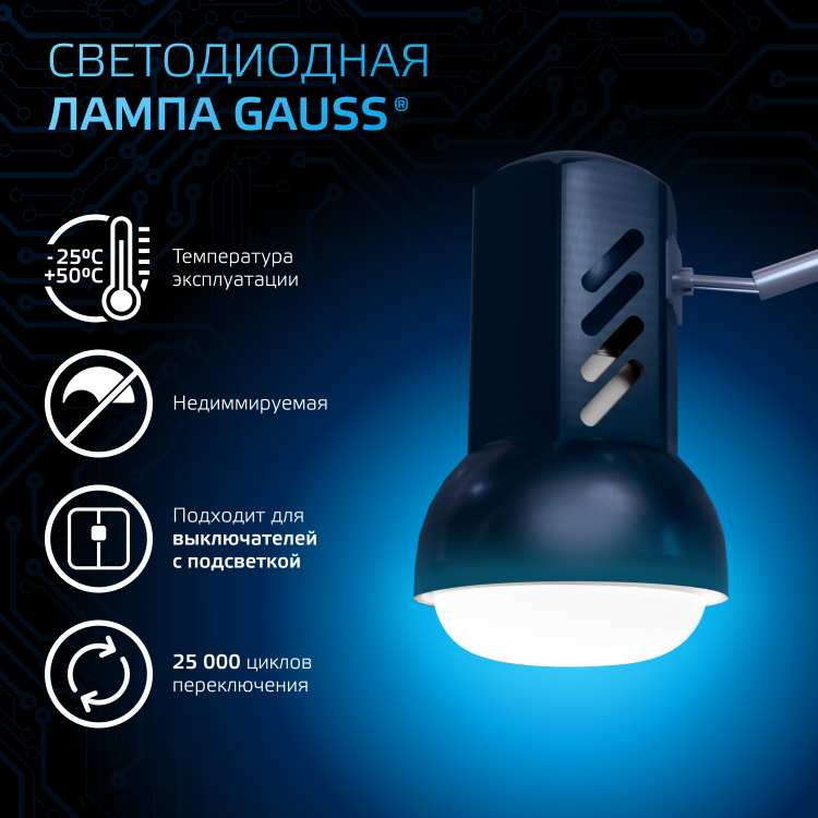 Отличная замена ламп накаливания и компактных люминесцентных ламп форм R39, R50, R63. Благодаря направленному световому пучку эти лампы помогают создать красивое, акцентное освещение. Спектр применения зеркальных ламп Gauss Black весьма широк: они прекрасно подойдут для любых типов потолков, для светильников направленного света и точечной подсветки.