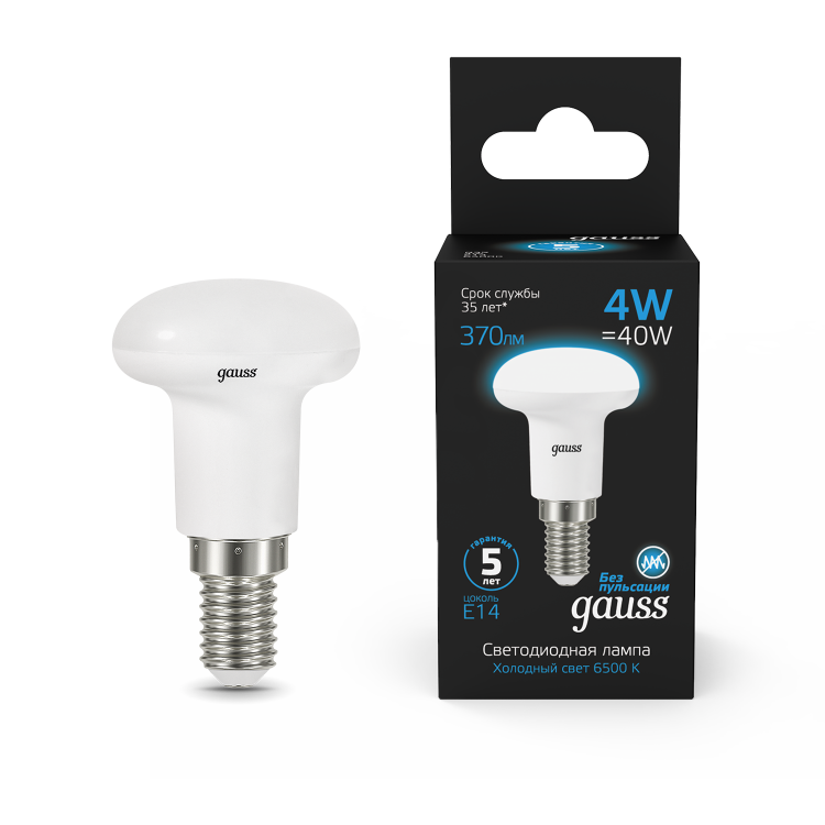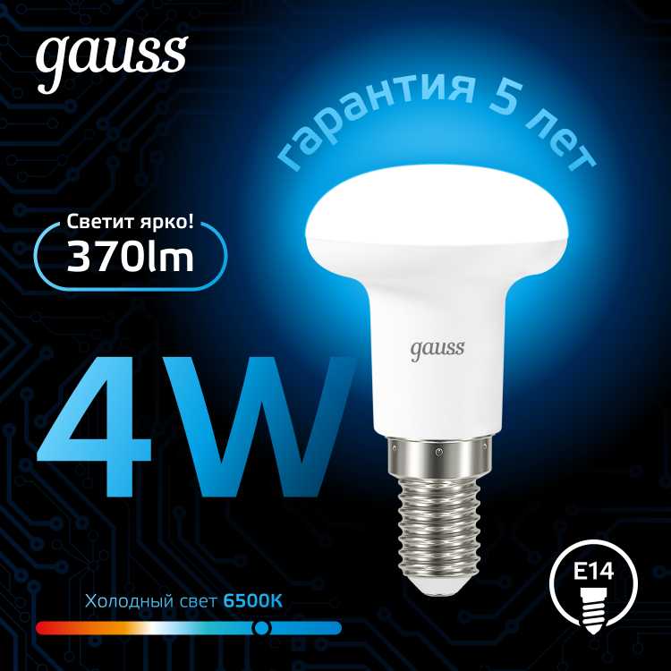 Лампа Gauss R39 4W 370lm 6500K Е14 LED 1/10/100
