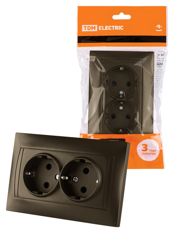 Розетка двойная 2П+З 16А 250В с защ. шт. бронза "Лама" TDM (кр.6шт)