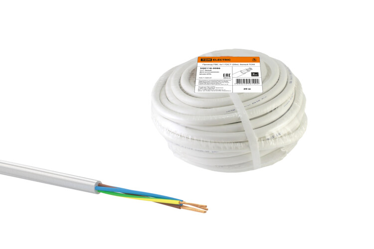 Провод ПВС 4х1 ГОСТ (20м), белый TDM (кр.20м)