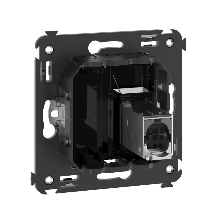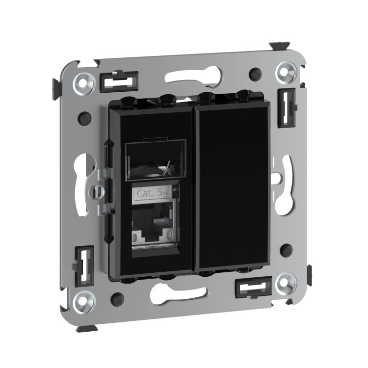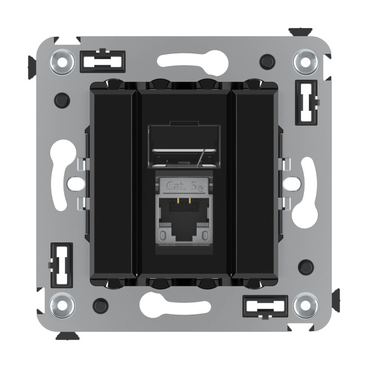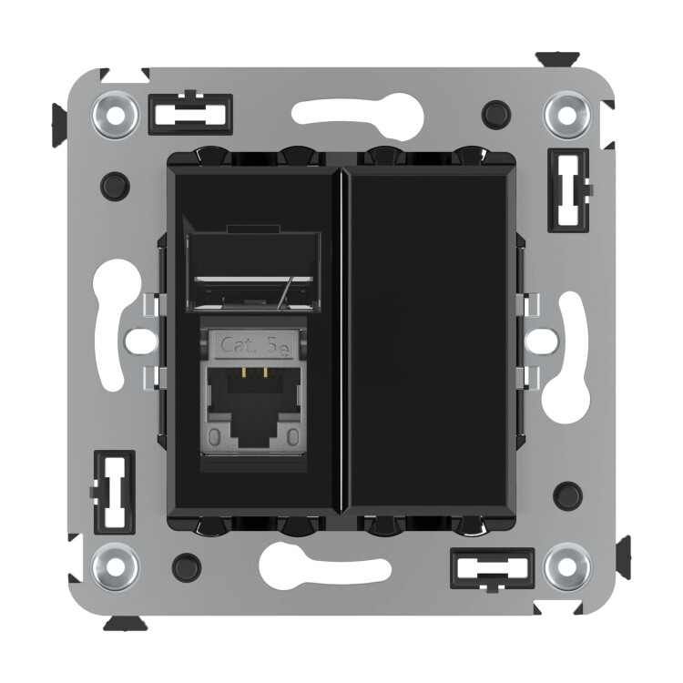 Компью терная розетка одинарная экранированная используется для подключения компьютерной техники и соединения с патч-панелью. Компьютерная розетка предназначена для скрытого монтажа в стену, поставляется в комплекте с суппортом. Розетка RJ-45 категории 5e – это наиболее популярная на сегодняшний день модель. Она позволяет организовать сеть с частотой 125 МГц и скоростью до 1000 Мбит/с. Материал – металл, термопласт. Пластиковые детали устройства имеют оттенок "Черный квадрат".