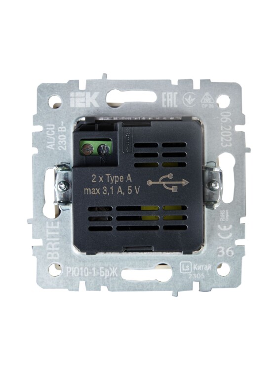 BRITE Роз. USB A+A 3,1А РЮ10-1-БрЖ жемч. IEK (кр.1шт)
