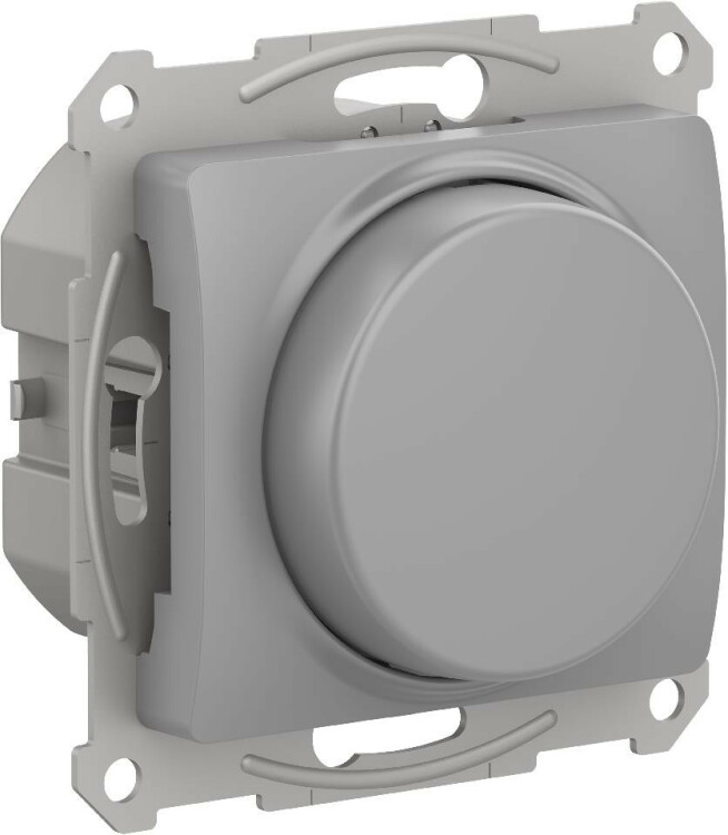 Механизм светорегулятора Systeme Electric (ранее Schneider Electric) серии Glossa (цвет алюминий) поворотно-нажимной для нагрузки мощностью до 315 Вт, подходит для LED ламп.