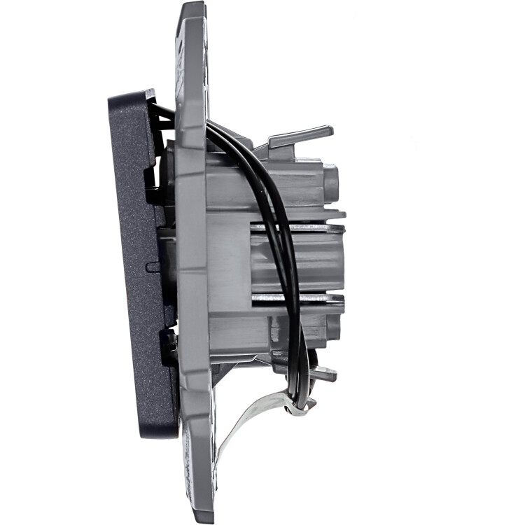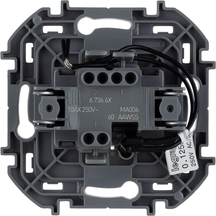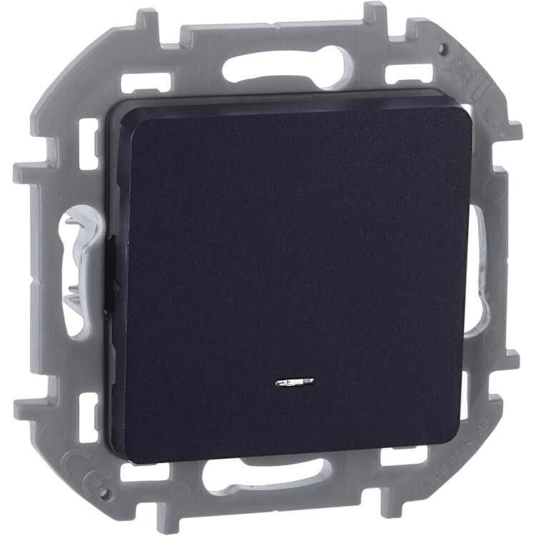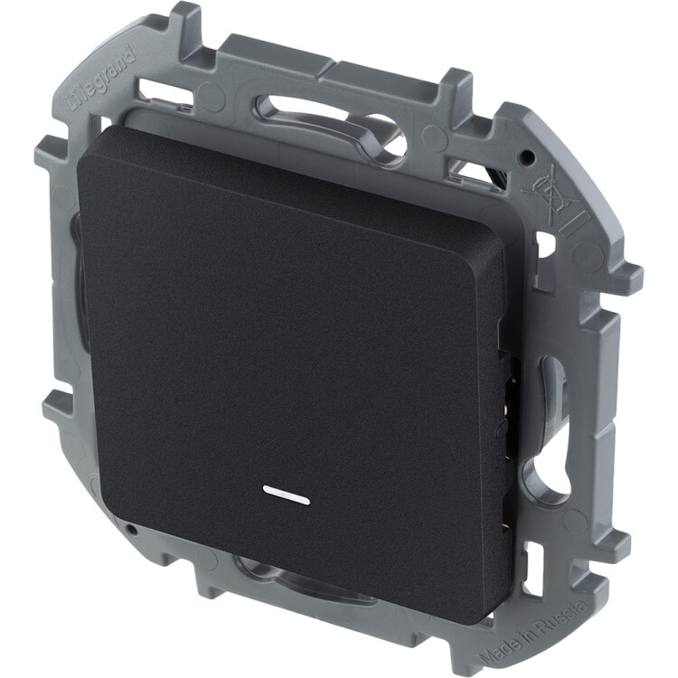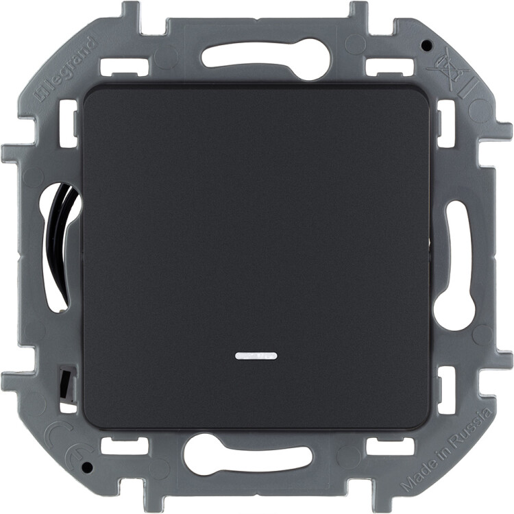 Переключатель одноклавишный с подсветкой/индикацией скрытого монтажа Legrand/Daccord Inspiria, цвет "Антрацит", номинальный ток 10АХ, напряжение ~250В, безвинтовые зажимы.