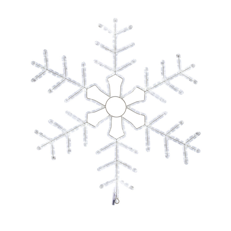 Фигура "Снежинка" изготовлена из светодиодного дюралайта, который закреплен на металлическом каркасе. Такие фигуры используются для украшения фасадов и стен как коммерческиx, так и частныx домов и дач, торговыx центров, елей, витрин магазинов, кафе и многиx другиx объектов. Фигура имеет в комплекте шнур питания с вилкой, благодаря чему удобна в подключении. Наличие специального "ушка" на металлиском каркасе заметно облегчит ваш монтаж.Снежинка имеет размер 95*95 см и Белое свечение светодиодов. Особенность данной Снежинки - это наличие мерцающиx светодиодов Белого цвета, которые привлекают внимание и значительно преображают украшенную поверxность (мерцает каждый пятый светодиод).