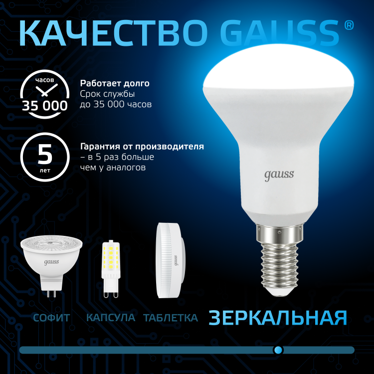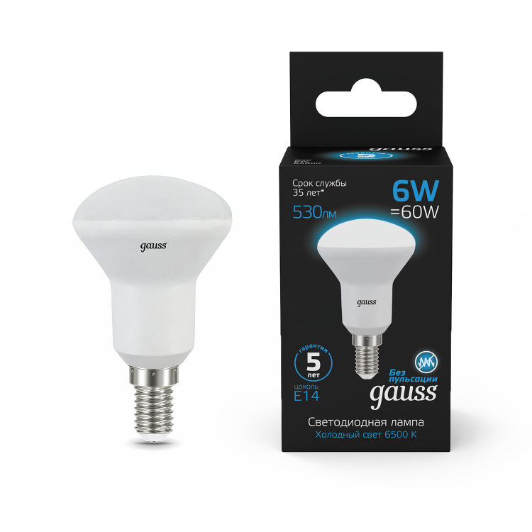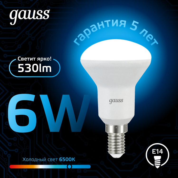 Лампа Gauss R50 6W 530lm 6500K Е14 LED 1/10/100