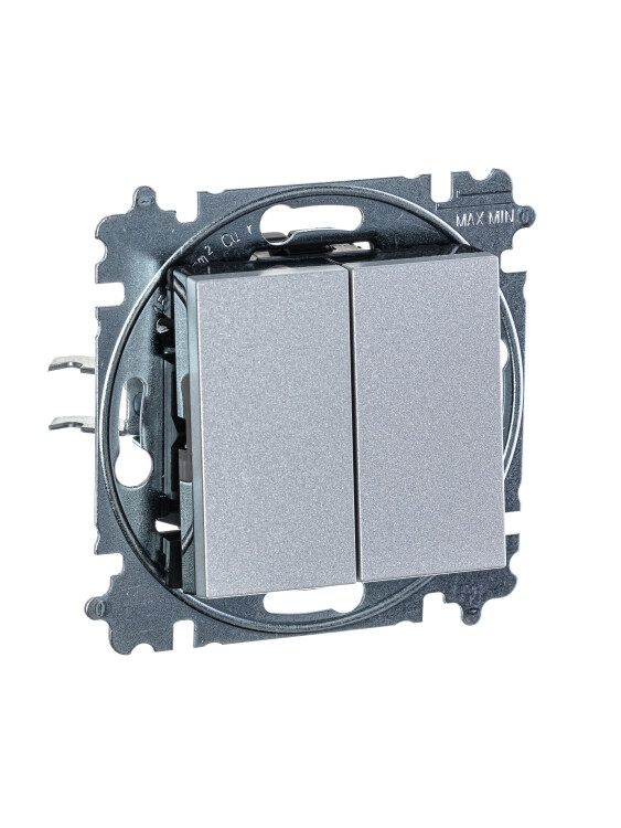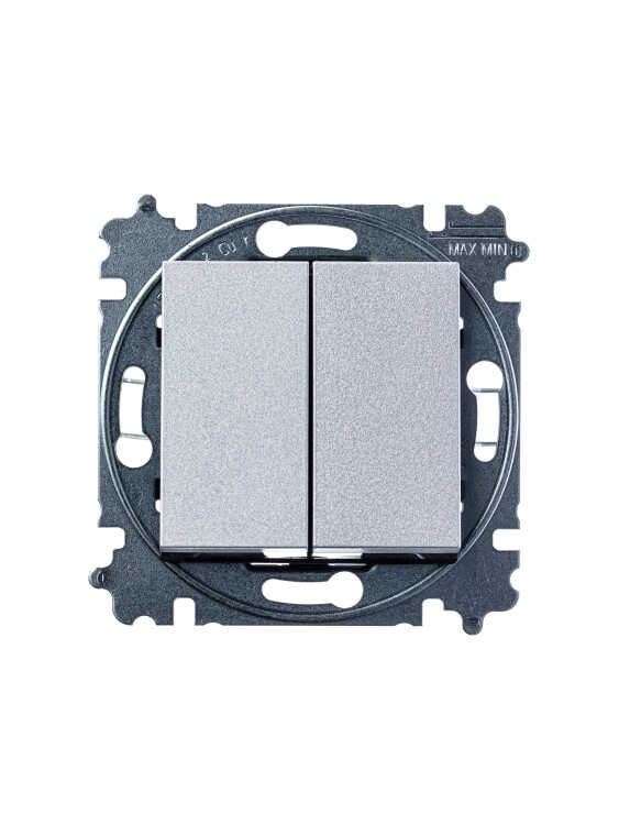 Переключатель 2-клавишный, Levit, серебро/дымчатый чёрный (кр.1шт)