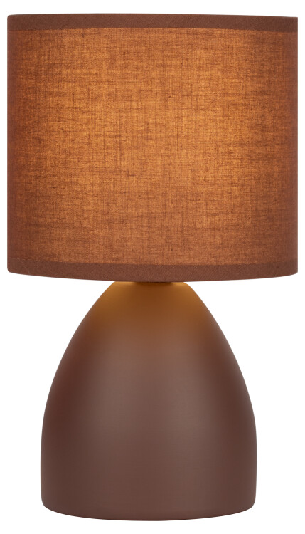 Rivoli Nadine (арт. 7047-501) – керамическая настольная лампа коричневого цвета с тканевым абажуром. В коллекции также настольные светильники оранжевого цвета (арт. 7047-502) и синего цвета (7047-503). Сочетание керамики и ткани выгодно подчёркивает стиль и красоту интерьера. Минималистичные геометричные настольные лампы Nadine Rivoli выглядят очень эстетично и помогают создать в комнате красивое акцентное освещение. Лампочка в светильник настольный Nadine – Е14 40 Вт. Светильник можно поставить на прикроватную тумбочку, на стол у кровати – и тогда он будет функционировать как ночник. Хорошим решением эта лампа настольная станет в качестве декоративного дополнительного освещения в гостиной, прихожей, коридоре. Дизайн светильника-ночника Nadine выполнен в Италии.