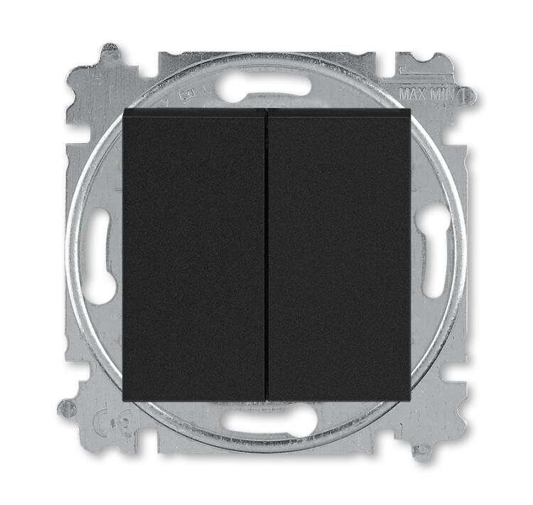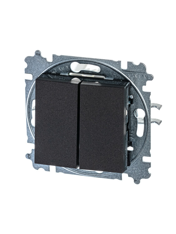 Выключатель 2-клавишный, Levit, антрацит/дымчатый чёрный (кр.15шт)