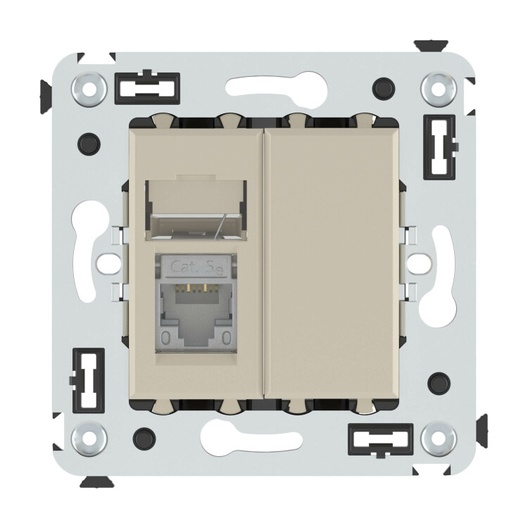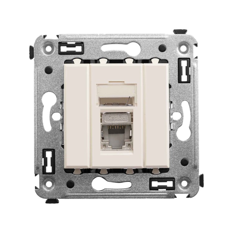 Компью терная розетка одинарная экранированная используется для подключения компьютерной техники и соединения с патч-панелью. Компьютерная розетка предназначена для скрытого монтажа в стену, поставляется в комплекте с суппортом. Розетка RJ-45 категории 5e – это наиболее популярная на сегодняшний день модель. Она позволяет организовать сеть с частотой 125 МГц и скоростью до 1000 Мбит/с. Материал – металл, термопласт. Пластиковые детали устройства имеют оттенок "Ванильная дымка".