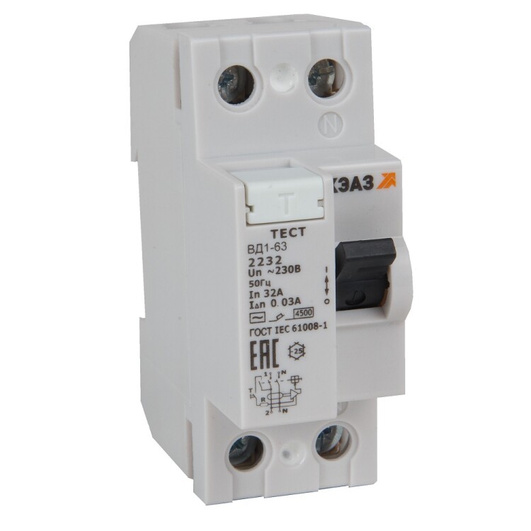 ВДТ без защиты от сверхтоков ВД1-63-2432-АС-УХЛ4 (2P, 32, 300mA) электронное-КЭАЗ (кр. 1шт)