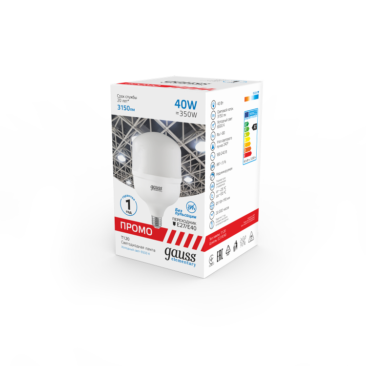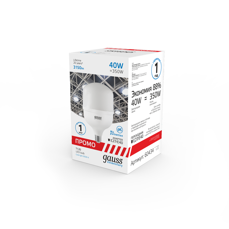 Светодиодные лампы высокой мощности в основном используются в освещении помещений большой площади и высокими потолками (от 3,5 метров), а также уличных системах освещения. Высокая мощность и большой световой поток при минимальном энергопотреблении - Gauss Т100-Т160