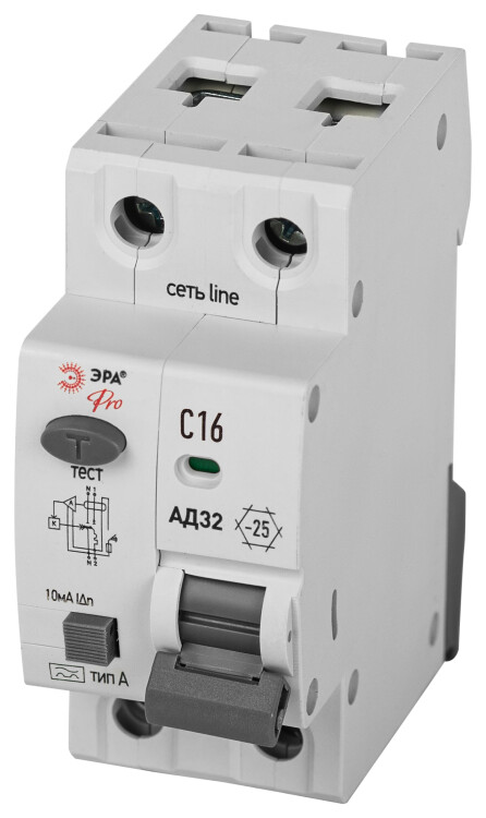 АВДТ 4,5кА ЭРА PRO D32E2C16А10 АД-32 электронное 1P+N C16 10мА тип А (кр. 1шт)