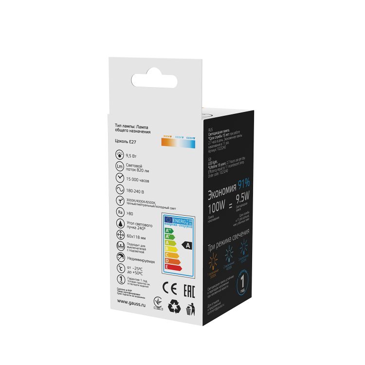 Светодиодные лампы GAUSS — энергосберегающая альтернатива привычным лампам накаливания. Наша компания предоставляет рынку широкий ассортимент ламп различных мощностей, форм и размеров для того, чтобы каждый дом был освещен в соответствии с предпочтениями потребителя. Продукция GAUSS имеет первоклассные технические параметры, что позволяет использовать ее как для бытового, так и для коммерческого сегмента. Любая выбранная покупателем модель обеспечит помещение высококачественным светом: даже при возможных скачках напряжения лампа не теряет яркость и не мерцает. Светодиодные лампы выполнены из современных материалов допускающих вторичную переработку и по завершении не нуждаются в особой утилизации.