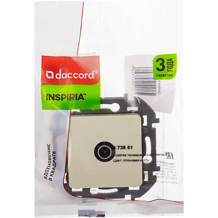 Розетка телевизионная для скрытого монтажа Legrand/Daccord Inspiria, для схемы "звезда", затухание 1дБ, 4-2400МГц, поддержка обратного питания для активных антенн до 500мА, цвет "Слоновая кость".
