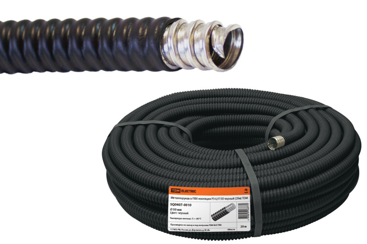 Металлорукав в ПВХ-изоляции РЗ-Ц-П 50 черный (20м) TDM (кр.20м)