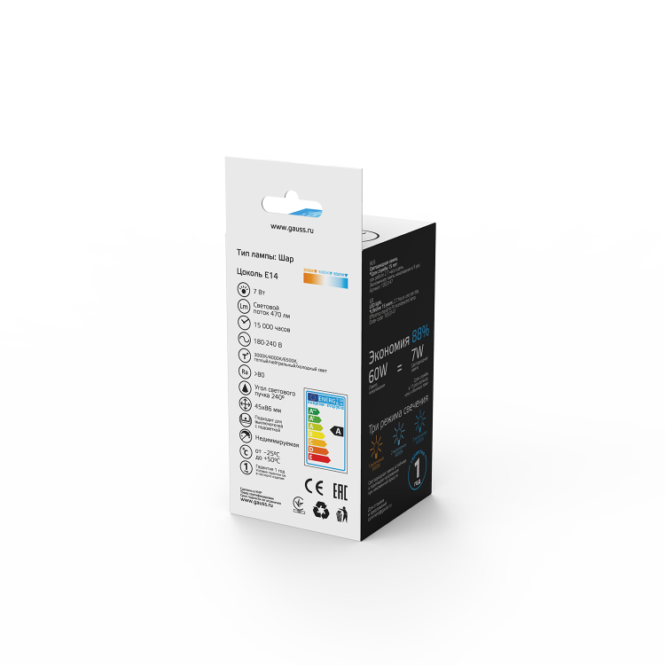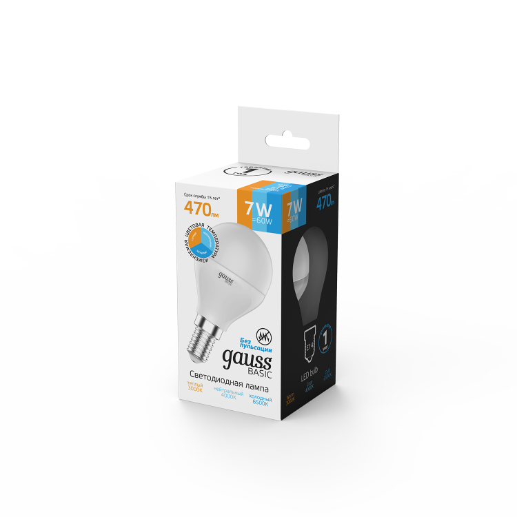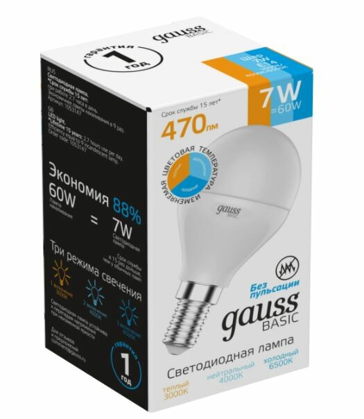Лампа Gauss Basic изготовленная по передовым LED технологиям, эстетична и экологична. Яркость 470lm обеспечит достаточное освещение в различных сценариях использования. Доступна регулировка цветовой температуры от теплого 3000K, нейтрального 4000K до холодного белого света 6500K.