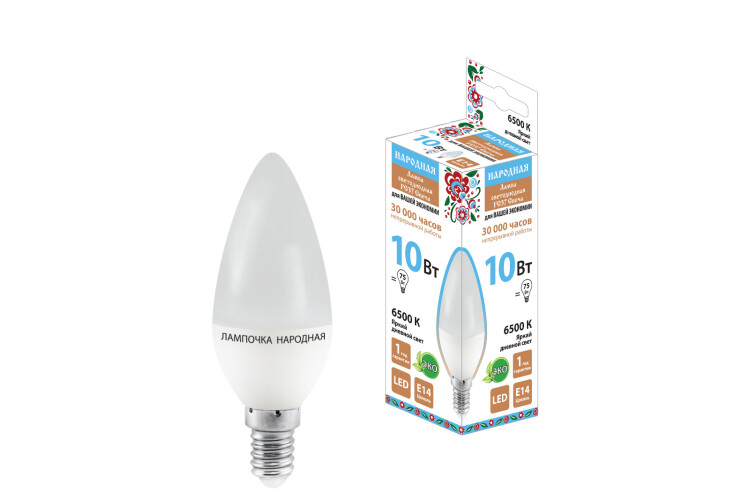 ЛампасветодиоднаяFС37-10Вт-230В-6500К–E14Народная (кр.10шт)