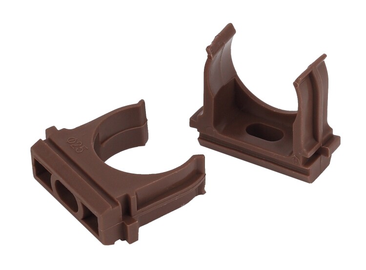 Используется для крепления гофрированных и гладких труб к поверхности стен или потолка. Для крепления к поверхности в крепёж-клипсе предусмотрено технологическое отверстие под саморез или дюбель.