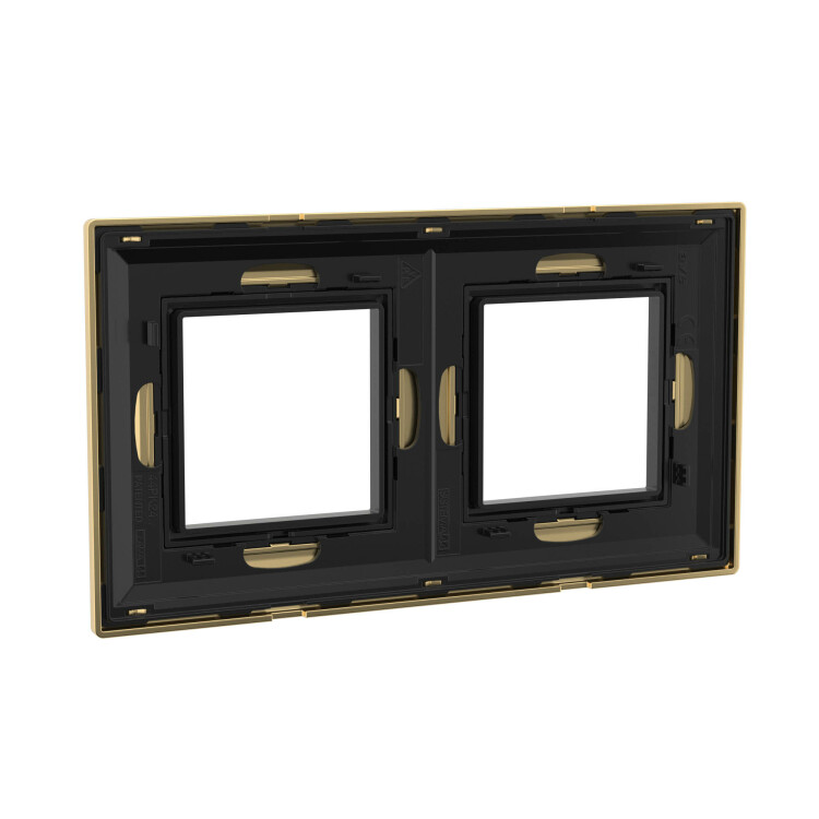 Золотистая рамка из металла для настенного монтажа. Назначение: декоративное оформление серии "Avanti"; монтаж в стену на каркас ЭУИ "Avanti" (код 4400802). Дизайн разработан Luca Mertelli. Материал – металл. Покрытие – порошковая краска. Кол-во модулей: 4