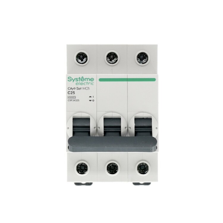 Автоматический выключатель серии City9 Set Systeme Electric, 3-полюсный, номинальный ток 25 А, характеристика С, Icn = 4.5 кА. Примен яется в электрических сетях напряжением 400 В. Предназначен для защиты от перегрузок и токов короткого замыкания. Оснащен механизмом «мгновенной коммутации». Ударопрочный корпус из специального пластика с 6 металлическими заклепками. Безопасные клеммы исключают попадание кабелей в заклеммное пространство (ранее Schneider Electric Easy9 EZ9F34325).