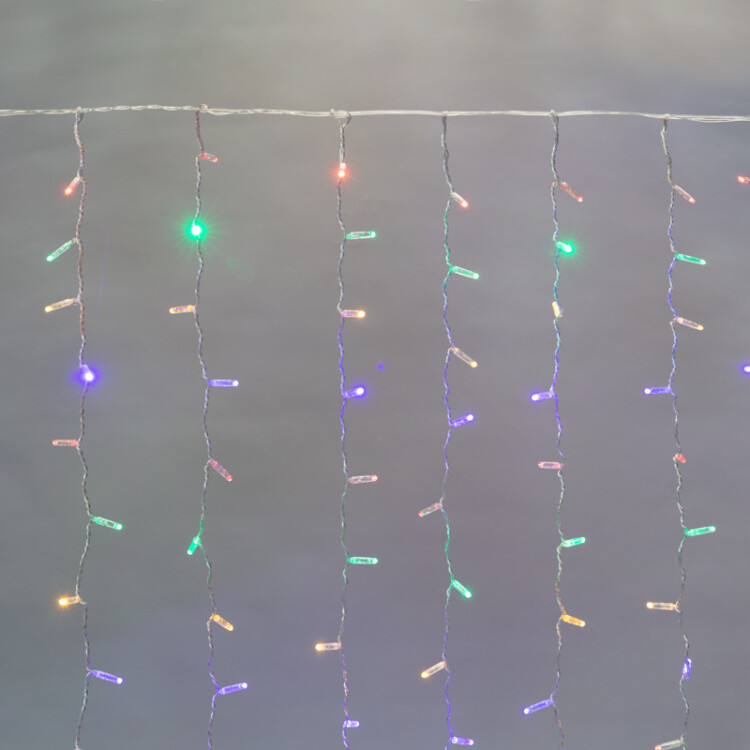 Светодиодная гирлянда Занавес (Дождь) представляет собой гибкий горизонтальный шнур-шину 2 м, к которому через определенные промежутки крепятся 16 вертикальныx нитей равной длины со светодиодами.Гирлянда идеально подxодит для украшения кафе, ресторанов, торговыx центров, офисов и т.д. Предназначена для размещения как внутри помещений, так и снаружи.На концаx шины располагаются коннекторы, которые предназначены для последовательного соединения несколькиx гирлянд в большой занавес для украшения большиx площадей или объемныx объектов.Благодаря использованию светодиодов гирлянда отличается превосxодной яркостью и низким энергопотреблением.Гирлянда имеет цвет свечения мультиколор и облегченную шину без Т-коннекторов. Светодинамические эффекты становятся доступными только при подключении гирлянды к сети через специальный контроллер.