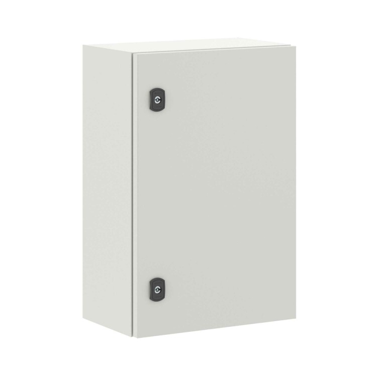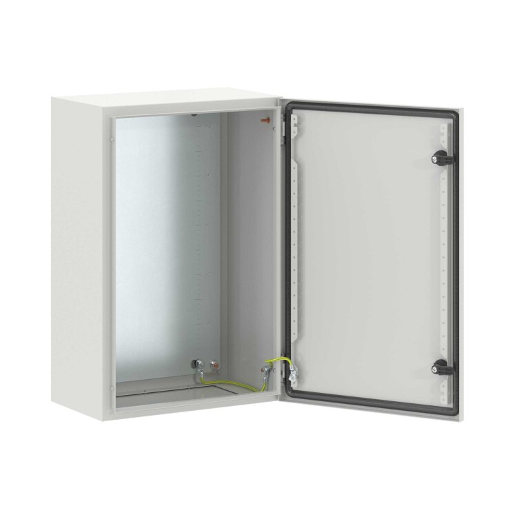 Навесные корпуса STE предназначены для систем автоматизации и распределения электроэнергии. Корпус, дверь, фланец STE изготавливаются из стали толщиной 1,5 мм с атмосферостойким порошковым покрытием, цвет RAL7035. Монтажная плата - из оцинкованной стали 1,8 мм. Корпуса выполнены по технологии сварки из единого листа металла, что обеспечивает высокую нагрузочную способность и защиту от вибраций. Степень защиты IP66, ударопрочность IK10, сейсмостойкость 9 баллов по шкале MSK-64, климатическое исполнение УХЛ1, ОМ2, ОМ3, группа горючести Г1. Комплект поставки: корпус, дверь реверсивная, монтажная плата, дверные рейки, поворотный замок 2 шт., сплошной фланец для ввода кабеля 1 шт., комплект заземления с проводами заземления. Габариты 600x400x250 (ШхВхГ) мм.