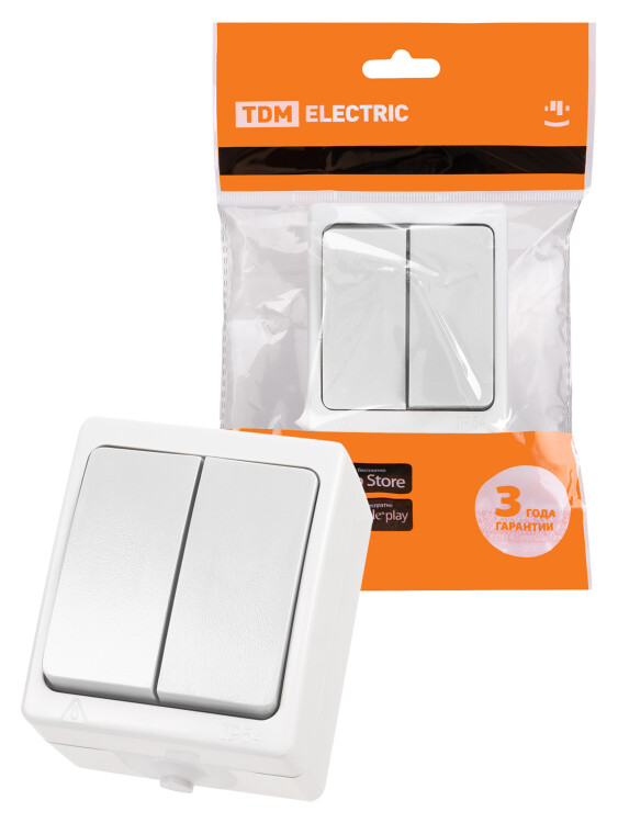 Выключатель 2-кл. открытой установки IP54 10А белый "Вуокса" TDM (кр.10шт)